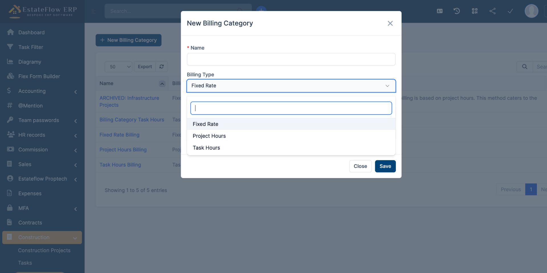 Navigate to Modules > Construction Orchestrator > Billing Categories.